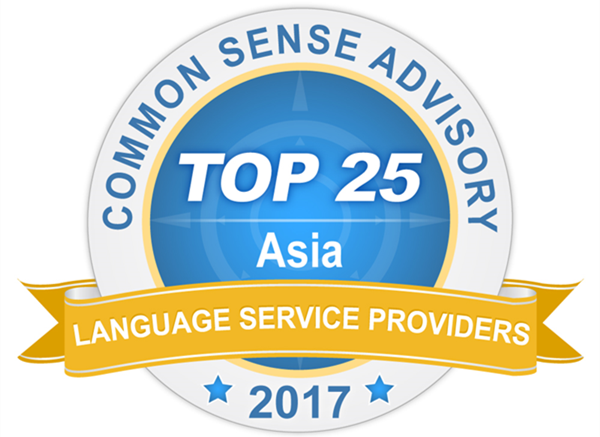 根据权威第三方研究机构Common Sense Advisory发布的“2017亚洲最佳语言服务提供商”(Top Language Service Provider in Asia in 2017)报告,瑞科翻译有限公司(Locatran Translations Ltd.)荣膺亚洲25强。本调查就公司的发展历史、年营业额、员工数量、办事处数量、服务质量、技术应用能力、行业影响力等诸多方面进行全球综合排名,具有国际认可的权威性。
